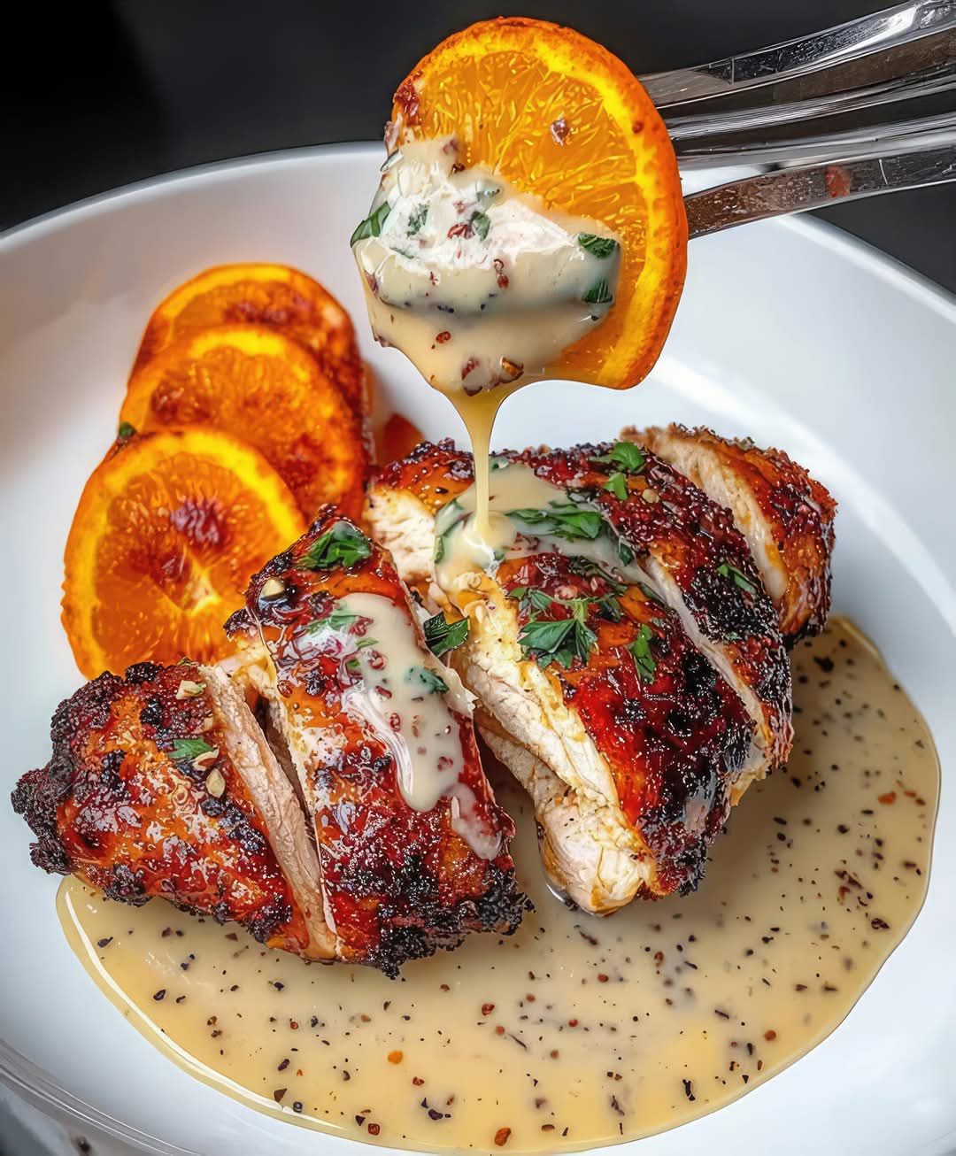 Kurczak w glazurze pomarańczowej z sosem śmietankowym Dijon 🍊