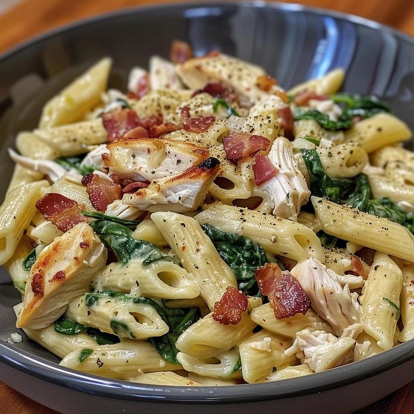 Ugotuj penne zgodnie z instrukcją na opakowaniu. Odcedź i odstaw na bok.